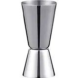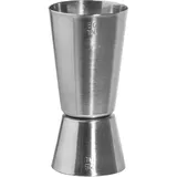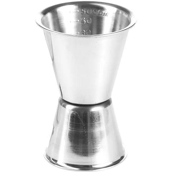 Джиггер имеет выгравированные деления, которые никогда не сотрутся. Серебристый мерный стакан имеет два объема – 30 и 50 мл. Производитель допускает мойку в посудомоечной машине.